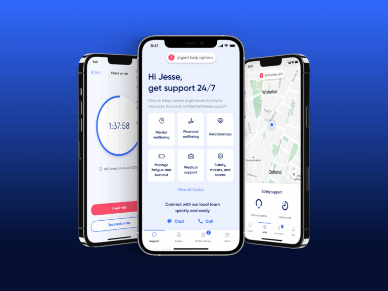 Our medically accredited team and technology gives employees 24/7 access to mental health care, medical advice and personal safety assistance through an easy to use mobile app with no session caps or predetermined outcomes.