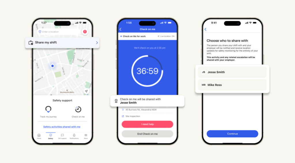 - Shared safety activities allow employees to share Check On Me and/or Share My Journey with a nominated manager, bringing leaders into the workflow earlier if something escalates. This shifts the leader’s visibility of safety issues from post-incident awareness to being part of the process as issues unfold.