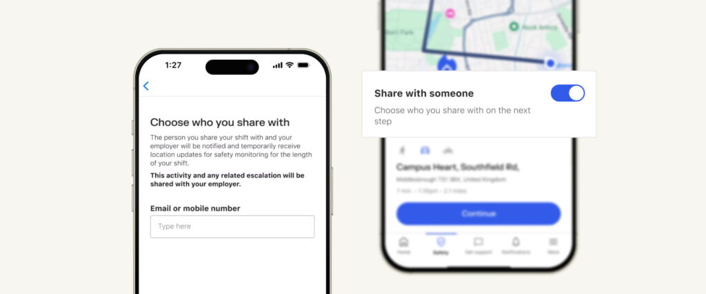 Importantly, Team Safe is opt-in and activity-based. Location is only shared when a member explicitly chooses to share a shift, or toggle sharing on for a specific safety activity. This is not always-on. It is contextual, time-bound and transparent.