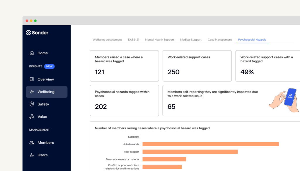 Because these insights are drawn from patterns across many support interactions, they help organisations understand which psychosocial hazards may be present and where they may be more prominent. Businesses can then use this information to inform their prevention efforts, education and formal psychosocial risk assessment.
