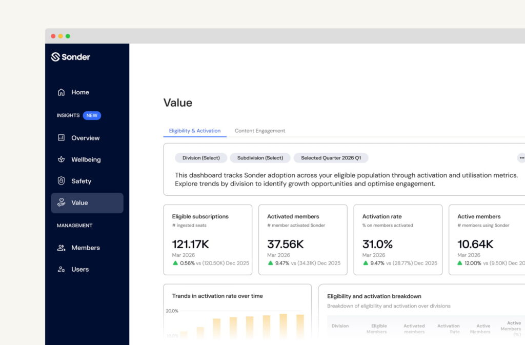 - Move from data to actionable insight: The evolved Sonder Portal moves beyond static metrics to provide leaders with a holistic, real-time view of organisational health, safety and wellbeing.