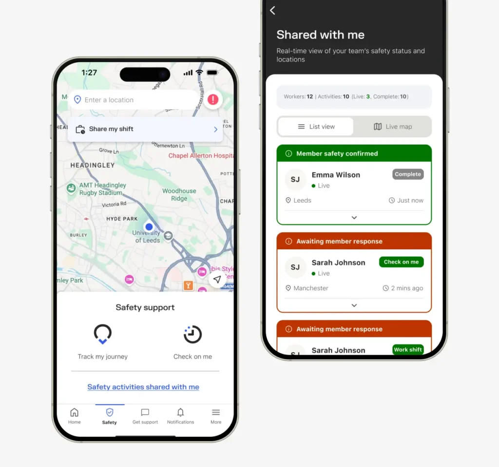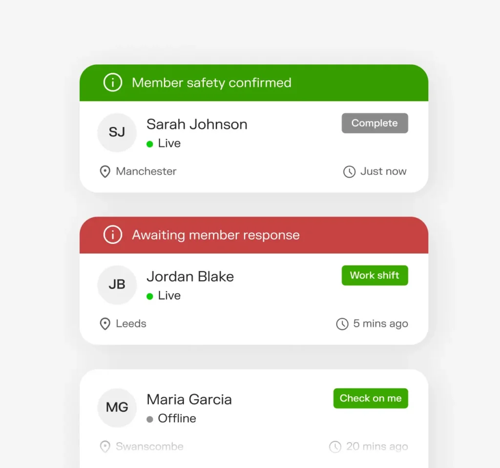 It bridges the gap between personal safety and organisational oversight, giving managers appropriate, consent-based oversight of shifts and shared safety activities.
