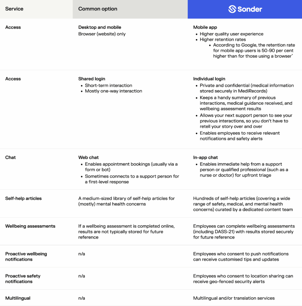 That’s where modern EAP alternatives like Sonder shine. Sonder redefines employee support by combining human-led care with innovative technology, creating a comprehensive, 24/7 solution that goes beyond mental health resources. Whether it’s offering mental health and safety assistance, providing preventative care, or integrating seamless digital tools, Sonder ensures employees receive the support they need when they need it most.