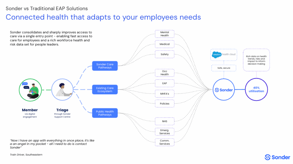 Instead of multiple entry points, organisations can provide one trusted place to start, no matter what the issue relates to. From this single entry point, trained support professionals can understand what is going on and guide the individual to the right form of help, whether it’s mental health support, medical advice, safety assistance, workplace processes or specialist care.