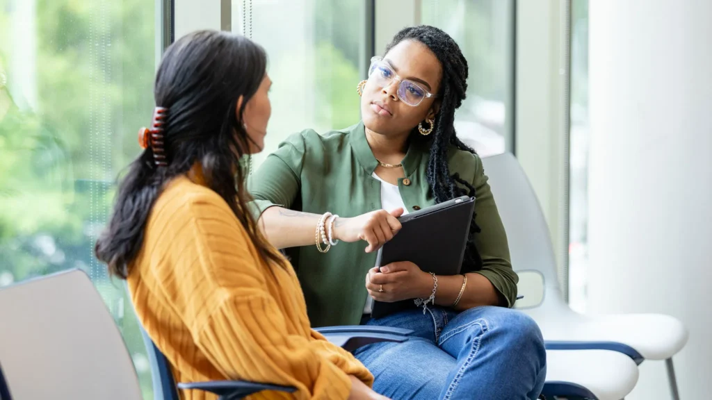- Providing access to confidential support: Managers shouldn’t be left to handle difficult conversations with staff. Giving staff the opportunity to self-nominate and gain professional health support confidentially can remove any fears around seeking help, particularly for female staff who may be concerned about the impacts of personal struggles on their career progression.
