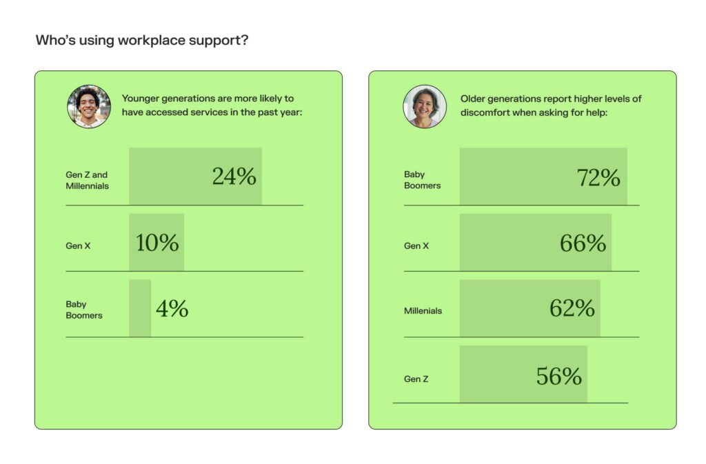 Meanwhile older employees report higher levels of discomfort when asking for help, often shaped by longstanding cultural norms about resilience and self-reliance.