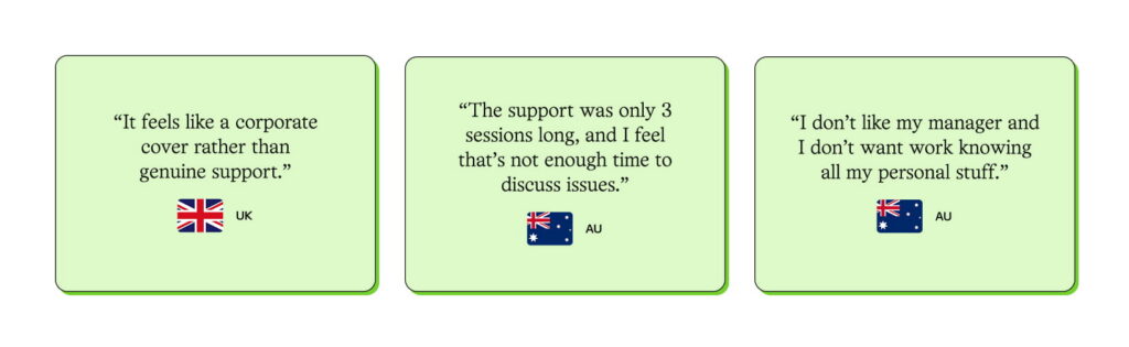 For many employees, the barriers are around perception, trust, and comfort. Some minimise their own experience. Others worry about being perceived differently at work, and concerns about confidentiality remain powerful. Even a small doubt about privacy can be enough to stop someone from seeking support.
