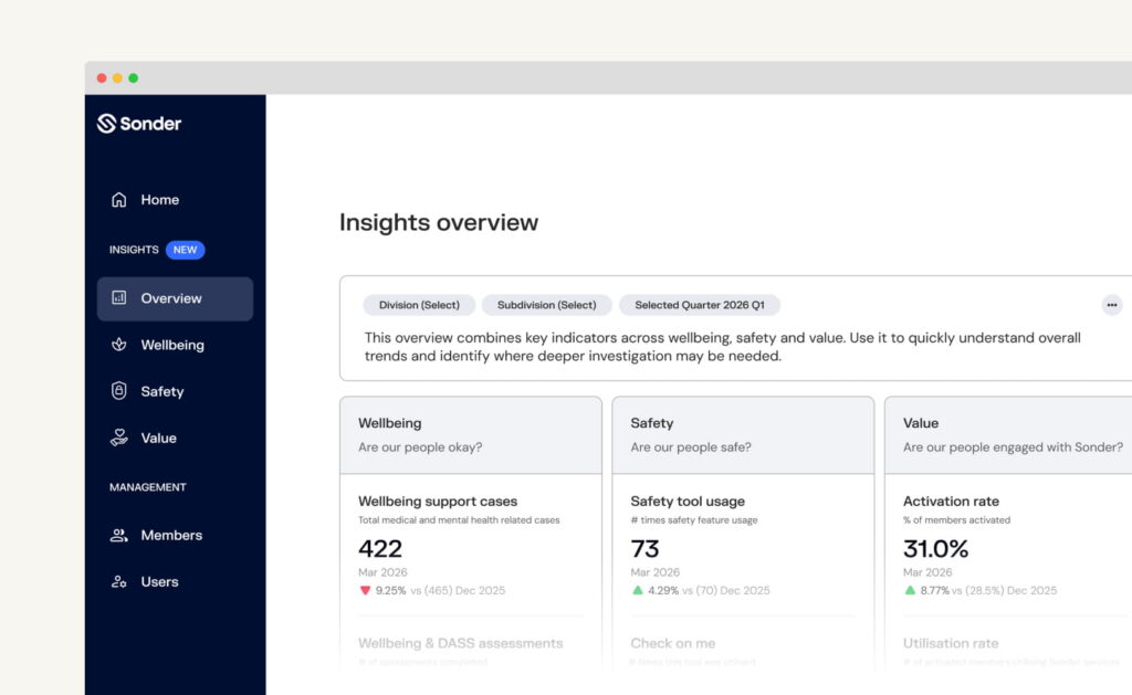 Sonder’s reporting has evolved to support this need. Reporting in the Sonder Portal now brings together timely, aggregated insight across wellbeing, safety and impact, helping organisations move beyond static reports and towards a more informed, preventative approach to decision-making.
